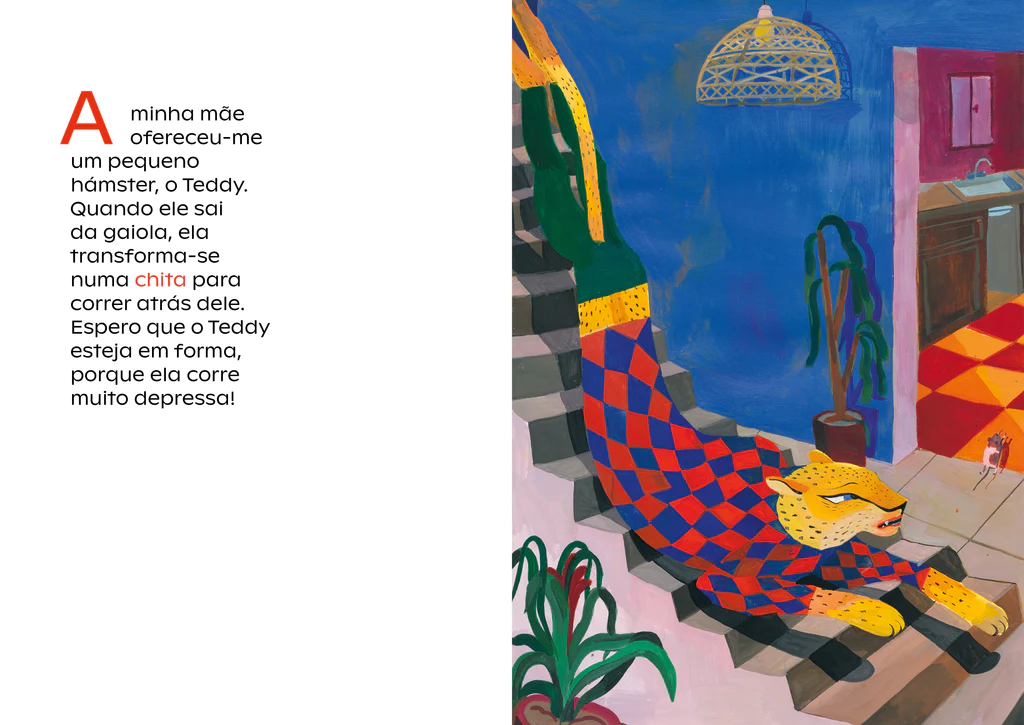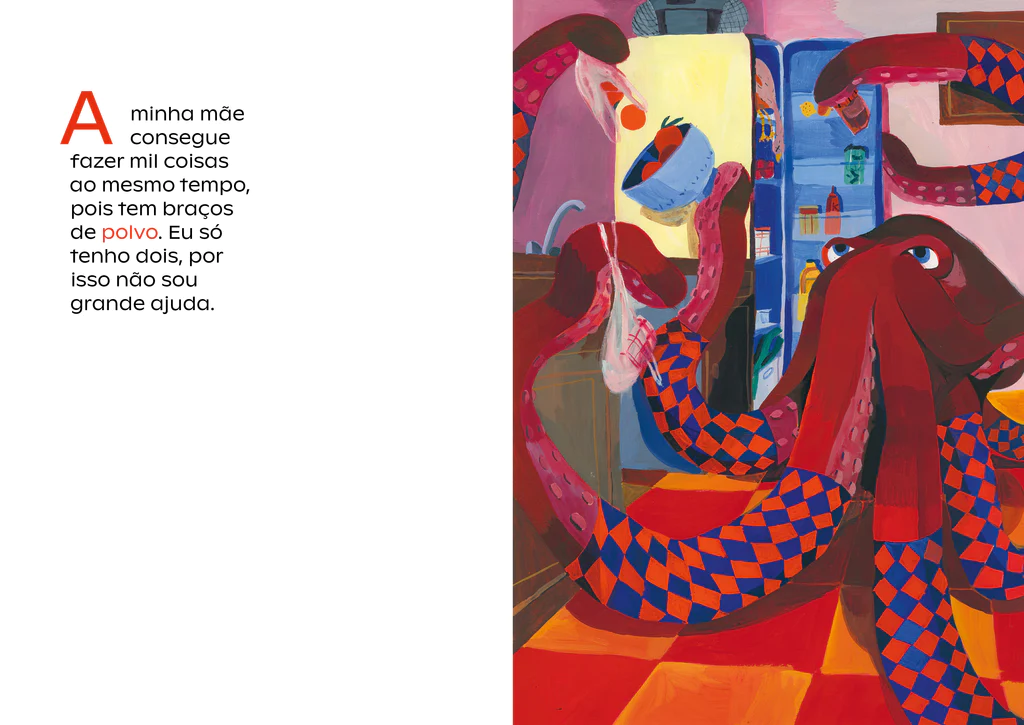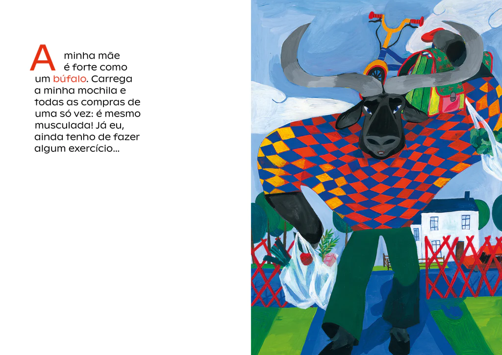 Tem a força de um búfalo, e com tantos braços até parece um polvo. Quando me manda arrumar o quarto é um autêntico papagaio, e quando adormece no sofá ressona como um urso em hibernação… Para me fazer rir, é capaz de mil macacadas! Eu sou o seu patinho, ela é a minha mãe.