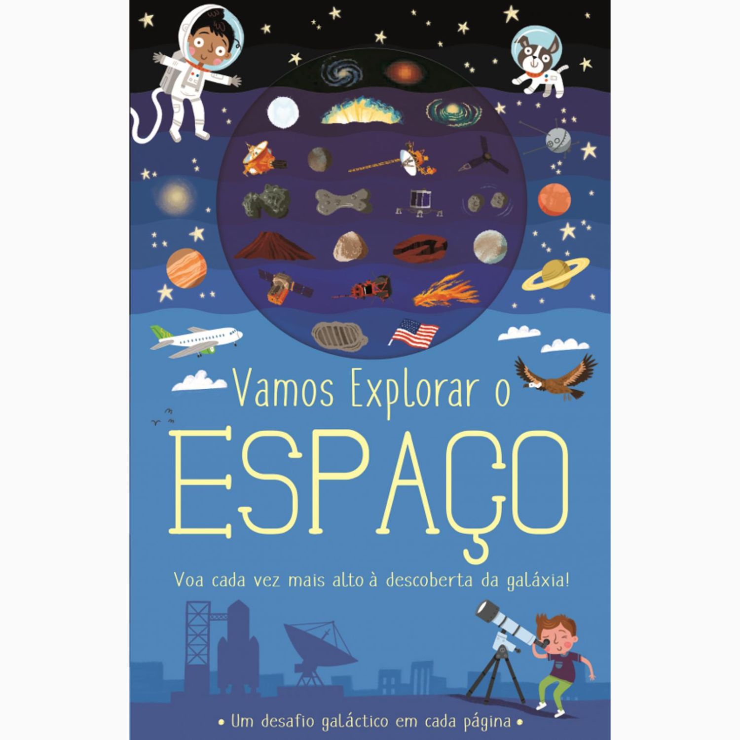 Junta-te à Alice, ao Óscar e ao seu cão, o Fred, e embarca numa viagem espetacular à descoberta dos céus. Neste livro, cada página leva-te cada vez mais alto para explorares tudo, desde a nossa atmosfera às galáxias mais distantes. E diverte-te a resolver o desafio apresentado em cada página.