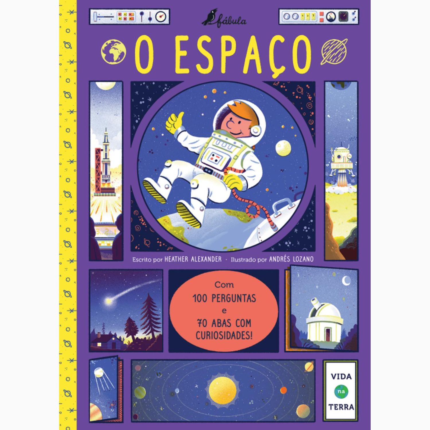 DESCOBRE o que existe no universo, OBSERVA todos os planetas bem de perto, APRENDE mais sobre o Sol e a Lua, PERCEBE como nascem e morrem as estrelas, INVESTIGA os instrumentos que existem para explorar o espaço e as incríveis naves e EXPLORA o espaço através dos cinco sentidos de um astronauta.